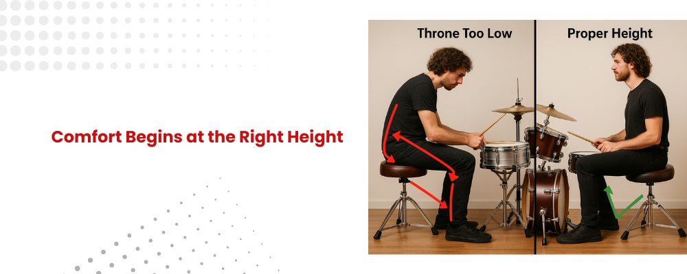 If you're tall, a drum throne that sits low is more than simply irritating; it may ruin your performance. Your knees hurt. You lose your posture. Your legs feel like they are trapped.