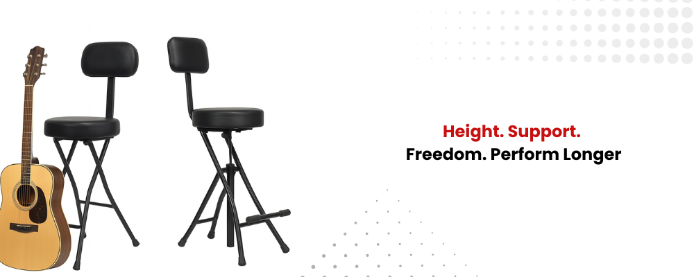 You’ll also want a stool that’s stable, silent (no squeaks), and built to last. Explore premium guitar stools with comfort-first designs