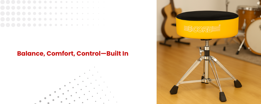A good drum throne in 2025 means more than just a padded seat. Look for models with adjustable height, memory foam or gel cushions, and strong double-braced legs. Saddle-style seats are especially helpful for long sessions and back support.