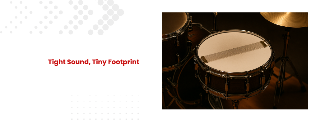 That’s where small-stage drum gear comes in. Compact setups allow you to save space, reduce setup time, and keep your performance area neat while still maintaining strong rhythm and tone.
